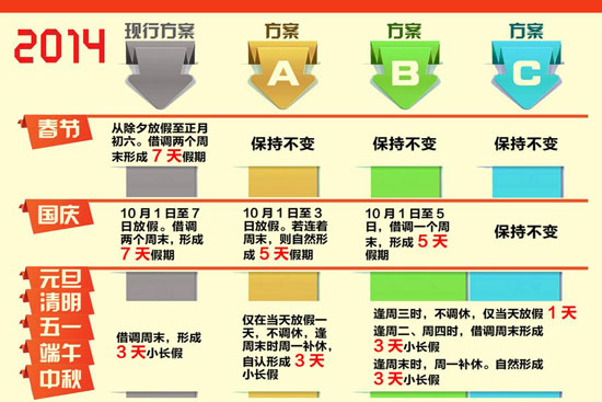 假日辦征求對(duì)假期意見,三種方案拿出來(lái)征求民意,用哪個(gè)都會(huì)招來(lái)吐沫。其實(shí)這也不是眾口難調(diào),而是管得太寬。一年放多少假,怎么個(gè)放法,把公務(wù)員給規(guī)定好了就結(jié)了。至于一般群眾想怎么休息,讓大家自行決定不好嗎?有那個(gè)絞盡腦汁琢磨挪日子的精力,真不如好好想想怎么落實(shí)勞動(dòng)法,讓大家能踏實(shí)休息,踏實(shí)帶薪休假,踏實(shí)每周40小時(shí)工作制。瞧瞧古今中外,哪個(gè)國(guó)家、哪個(gè)朝代,有為放假這么嘬牙花子的么?